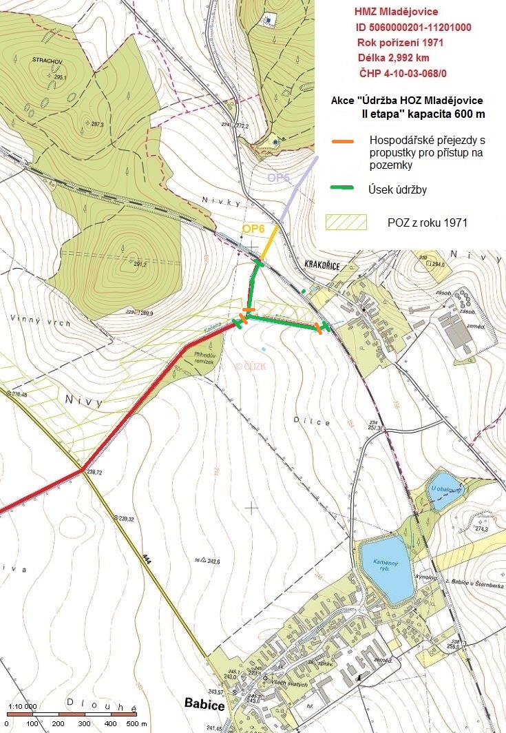 Stručný popis předmětu: Předmětem této veřejné zakázky je poskytováni služeb - provedení udržovacích prací v k.ú. Řepčín a Hejčín, obec Olomouc, ORP Olomouc; k.ú. Nemilany, obec Olomouc, ORP Olomouc; k.ú. Slavonín, obec Olomouc, ORP Olomouc; k.ú. Krakořice, obec Šternberk, ORP Šternberk; k.ú. Mladeč, obec Mladeč, ORP Litovel; k.ú. Rapotín, obec Rapotín, ORP Šumperk - sečení divokého porostu a vodního rostlinstva. Veškerý pokosený porost bude vyhrabán, uložen na břehové hrany, resp. odvezen a ekologicky zlikvidován v souladu se zákonem o odpadech č. 541/2020 Sb., v platném znění. Práce budou provedeny na 6 objektech staveb vodních děl – hlavních odvodňovacích zařízeních (HOZ) v celkové délce 2,738 km, k zajištění provozuschopnosti a obnovení funkčnosti HOZ v majetku státu a příslušnosti hospodařit SPÚ.