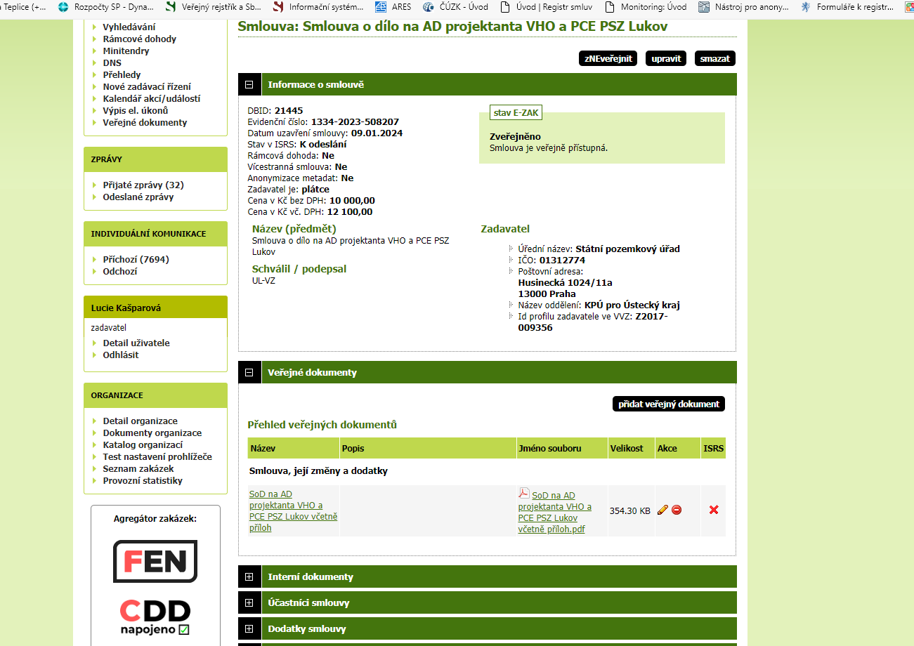 Uveřejnění SoD na AD projektanta VHO a PCE PSZ Lukov do RS | ostatní dokumentace - veřejná |
